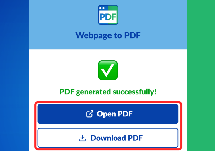 Webpage to PDF automatically removes distracting elements from the page before converting. You get a clean, readable PDF that includes only the content you care about.
